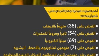 أهم العمليات النوعية لجهاز الأمن الوطني- شهر أيار- ٢٠٢٤