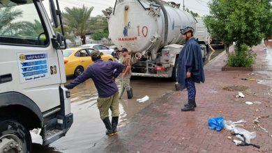 القطعات الامنية لقيادة العمليات تستنفر جهودها لدعم الدوائر الخدمية لسحب مياه الامطار في عدد من مناطق العاصمة.
