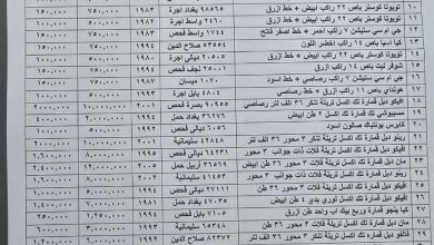 تعلن الهيئة العامة للكمارك / مديرية كمرك المنطقة الوسطى / قسم المبيعات عن بيع سيارات مختلفة الأنواع والموديلات وفقًا لقانون بيع وايجار أموال الدولة رقم ۲۱ لسنة ۲۰۱۳ والتي تم مصادرتها وفقًا لقانون مكافحة تهريب النفط ومشتقاته