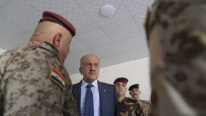 وزير الدفاع يتفقد معسكر التاجي تفقد وزير الدفاع، السيد ثابت محمد العباسي، يوم الأحد الموافق 25 أيار 2025، معسكر التاجي، للاطلاع على الأعمال الجارية في قاعدة التاجي الجوية وفرقة القوات الخاصة الثانية، وذلك ضمن خطة إعادة تأهيل القاعدة والفرقة. وأجرى السيد الوزير جولة تفقدية في مفاصل المعسكر، وأصدر توجيهات بشأن الأعمال الجارية، بما يضمن انسجامها مع حجم ومتطلبات الأبنية التابعة للوزارة.