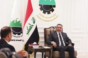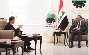وزيـر الصناعـة والمعـادن يبحـث مـع السفيـر الأردنـي ملفـات التعـاون الصناعـي والمشاريـع المُشتركـة – التقى معالي وزير الصناعة والمعادن البروفيسور المهندس خالد بتّال النجم، في مكتبه الرسمي بمقر الوزارة مع سفير المملكة الأردنية الهاشمية لدى جمهورية العراق السيد ماهر الطراونة. وجرى خِلال اللقاء بحث العلاقات الثُنائية وآفاق التعاون في عدد من القطاعات الصناعية ذات الاهتمام المُتبادل، ومُناقشة عدد من المواضيع والملفات المُرتبطة بسير العمل والتعاون القائم بين البلدين. وأشار معالي الوزير إلى العلاقات الأخوية التي تربط العراق والأردن، مؤكداً أهمية تعزيز التعاون الثنائي في القطاع الصناعي بما يُحقق المصالح المُشتركة للشعبين الشقيقين. من جانبه أكد السفير الأردني رغبة بِلاده وحرصها على توثيق أواصر التعاون والعمل المُشترك بما يخدم تطلُعات البلدين.