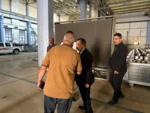الشركة العامة للصناعات الكهربائية والإلكترونية تجهز وزارة الكهرباء بمحولات توزيع كهربائية(SKD) حسب العقد المبرم بين الطرفين تنفيذاً لتوجيهات معالي وزير الصناعة والمعادن البروفيسور المهندس خالد بتال النجم المحترم بضرورة تعزيز التعاون بين وزارات الدولة وبالأخص مع وزارة الكهرباء بهدف دعم وتحسين واقع منظومة الطاقة الكهربائية في البلد وبمتابعة واشراف مباشر من قبل مدير عام الشركة المهندس صبّار عثمان حمادي المحترم تم تجهيز الوجبة الثانية من العقد والتي تضمنت (٩٤) محولة توزيع كهربائية (SKD ) بسعة (400kva ) ليصبح إجمالي التجهيز (٢٤٤) محولة من أصل (٧٠٠) محولة متفق على تجميعها بالمصنع وإكمال فحصها بمختبر المحولات الحاصل على شهادة الاعتمادية من وزارة التخطيط وبقيمة مضافة لاتقل عن ٥٠% وتوريدها عبر مصنع محولات التوزيع الكهربائية التابع للشركة وتم التسليم بحضور الكادر الفني المتخصص في مصنع محولات التوزيع الكهربائية بالإضافة الى لجنة من وزارة الكهرباء / فرع توزيع كهرباء الرصافة الجهة المستفيدة بعد الانتهاء من كافة الفحوصات المختبرية وسيتم استكمال تجهيز باقي المحولات تباعاً وحسب الجدول الزمني المتفق عليه بين الجانبين وبالمواصفات الفنية المعتمدة لدى وزارة الكهرباء علما ان الشركة تمتلك مصنع محولات متكامل وتم رفده بمكائن ومعدات حديثة ومتطورة والشركة مستعدة للتعاون مع القطاعين العام والخاص
