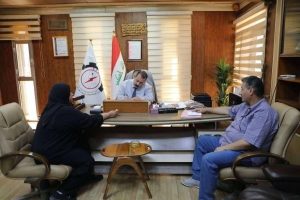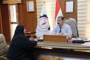 السيد مدير عام الشركة العامة للصناعات الكهربائية والالكترونية يلتقي مجموعة من موظفي الشركة للنظر في طلباتهم