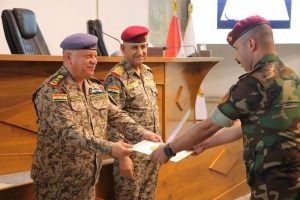 بحضور السيد رئيس أركان الجيش والسيد نائب قائد العمليات المشتركة قيادة العمليات المشتركة تحتفل بتخرج دورة تجهيز الطائرات المقاتلة بالليزر باستخدام الموارد العراقية