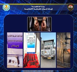 الفرقة الثانية/ اللواء الثامن/ تنفيذ عملية تفتيش على الأسلحة غير المرخصة في منطقة ( شاطئ التاجي الشمالي)، وضبط (6 بندقية مختلفة، مسدس، 5 مخزن عتاد، 26 اطلاقة مختلفة).