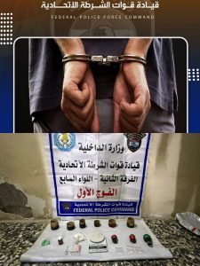 الشرطة الاتحادية تعثر على مواد مخدرة وادوات للتعاطي بدلالة متهم في بغداد ضمن الجهود الأمنية المستمرة لقطعات الشرطة الاتحادية، باشرت قوة من اللواء السادس الفرقة الثانية بإسناد قوة من مديرية مكافحة مخدرات الكرخ ضمن منطقة ابو دشير وبدلالة متهم تم القاء القبض عليه سابقاً تم العثور بداخل داره على (مجموعة أكياس فارغة، ميزان إلكتروني، حبوب بيضاء اللون عدد 52 مجهولة النوع ، 3 رمانة دفاعية، مادة بيضاء اللون مجهولة النوع) تم تسليم المواد المضبوطة إلى الجهات المختصة لإكمال الإجراءات القانونية والتحقيقية اللازمة بحقه .