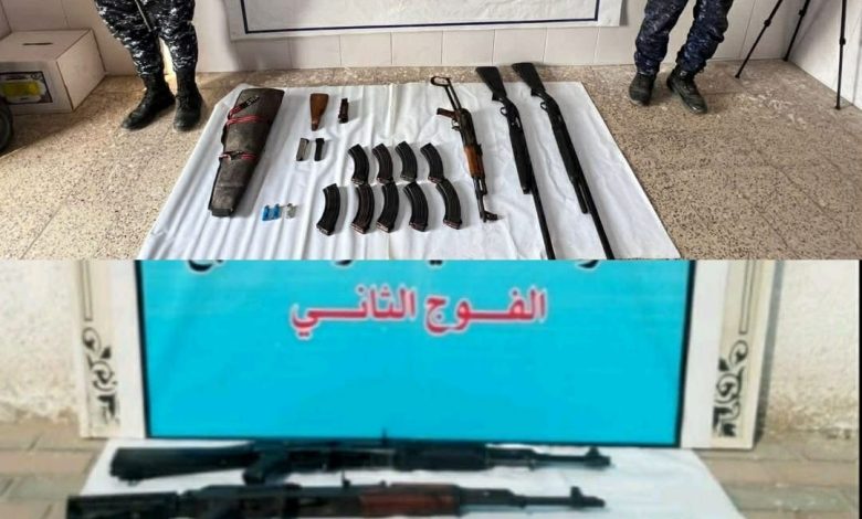 الشرطة الاتحادية تضبط أسلحة واعتدة غير مرخصة في عمليات تفتيش ببغداد أسفرت عمليات التفتيش عن الأسلحة غير المرخصة والتي نفذتها قطعات اللواء 7 الفرقة الثانية واللواء 19 الفرقة الخامسة شرطة اتحادية بإسناد الأجهزة الأمنية العاملة في مناطق ( البوعيثة،