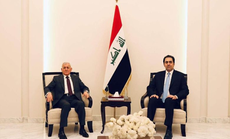 المندلاوي يبحث مع رئيس الجمهورية الحراك السياسي الحالي لحسم الاستحقاقات الدستورية وفقا لمواعيدها المقررة استقبل رئيس ائتلاف الاساس العراقي، السيد محسن المندلاوي، في دار ضيافته اليوم الثلاثاء ١٣ كانون الثاني ٢٠٢٦، السيد رئيس الجمهورية د. عبد اللطيف جمال رشيد. وجرى، خلال اللقاء، بحث مستجدات الأوضاع السياسية والاقتصادية على الساحة المحلية والدولية ، فضلا عن مناقشة الحراك السياسي الحالي لحسم الاستحقاقات الدستورية ضمن مواعيدها المقررة. واكد رئيس ائتلاف الاساس على ضرورة انضاج الحوارات بين مختلف القوى للاسراع بحسم الاستحقاقات الدستورية وتشكيل حكومة خدمية تلبي متطلبات ابناء الشعب وتعزز الامن والاستقرار في البلاد.