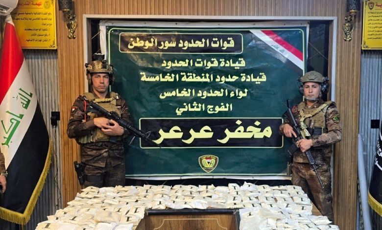 الفوج الثاني في لواء الحدود الخامس بالتعاون مع مديرية المخدرات والمؤثرات العقلية في الرطبة يضبط (105,000) حبة مخدّرة نوع كبتاكون كانت معدّة للتهريب ومخبأة داخل جنطة وموضوعة في بالون هوائي.