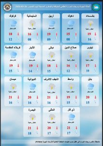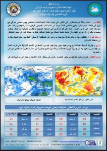 وزارة النقل النشرة الجوية اليوم الخميس الموافق ٢٦/اذار والايام التي تليه والصادرة عن الهيئة العامة للانواء الجوية والرصد الزلزالي _قسم التنبؤ الجوي ويتم تحديثها يوميًا حسب مستجدات الحالة الجوية ( بمشيئة الله تعالى) ————————