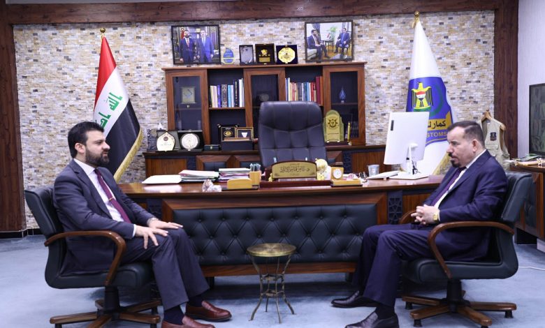 مدير عام الهيئة العامة للكمارك يستقبل النائب أحمد المساري لبحث تعزيز التعاون الرقابي والتشريعي استقبل مدير عام الهيئة العامة للكمارك، الدكتور ثامر قاسم داود، النائب أحمد المساري، في مقر الهيئة، لبحث آليات تطوير العمل الكمركي وتعزيز التنسيق بين السلطة التنفيذية والتشريعية، بما يسهم في رفع كفاءة الأداء المؤسسي ودعم الاقتصاد الوطني. وجرى خلال اللقاء استعراض أبرز التحديات التي تواجه العمل الكمركي، ومناقشة السبل الكفيلة بتعزيز الرقابة ومنع حالات التهريب، فضلاً عن دعم التشريعات التي تسهم في تبسيط الإجراءات وتحقيق الانسيابية في المنافذ الحدودية. وأكد المدير العام حرص الهيئة على الانفتاح والتعاون مع مجلس النواب، بما يعزز الشفافية ويواكب متطلبات المرحلة، فيما شدد النائب على أهمية دعم المؤسسات الرقابية وتطوير البيئة التشريعية بما ينسجم مع أولويات الإصلاح الاقتصادي. ويأتي هذا اللقاء في إطار جهود الهيئة لتعزيز الشراكات الوطنية وتكامل الأدوار بين مؤسسات الدولة