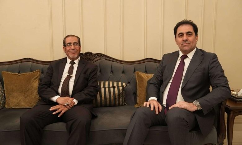 المندلاوي — المسعراوي الصورة منفردة واللقاء مع جمع من مرشحي ائتلاف الاساس العراقي برئاسته.. وتحدث ببساطته معنا حول الظروف التي تحيط بالعراق